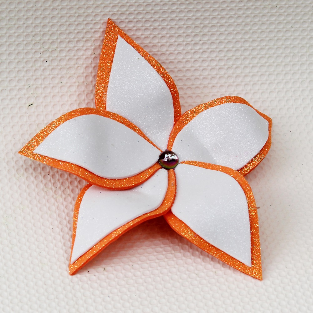 Flor com bico de pato que pode ser usada no cabelo, como ombeira ou ainda como detalhe em roupa