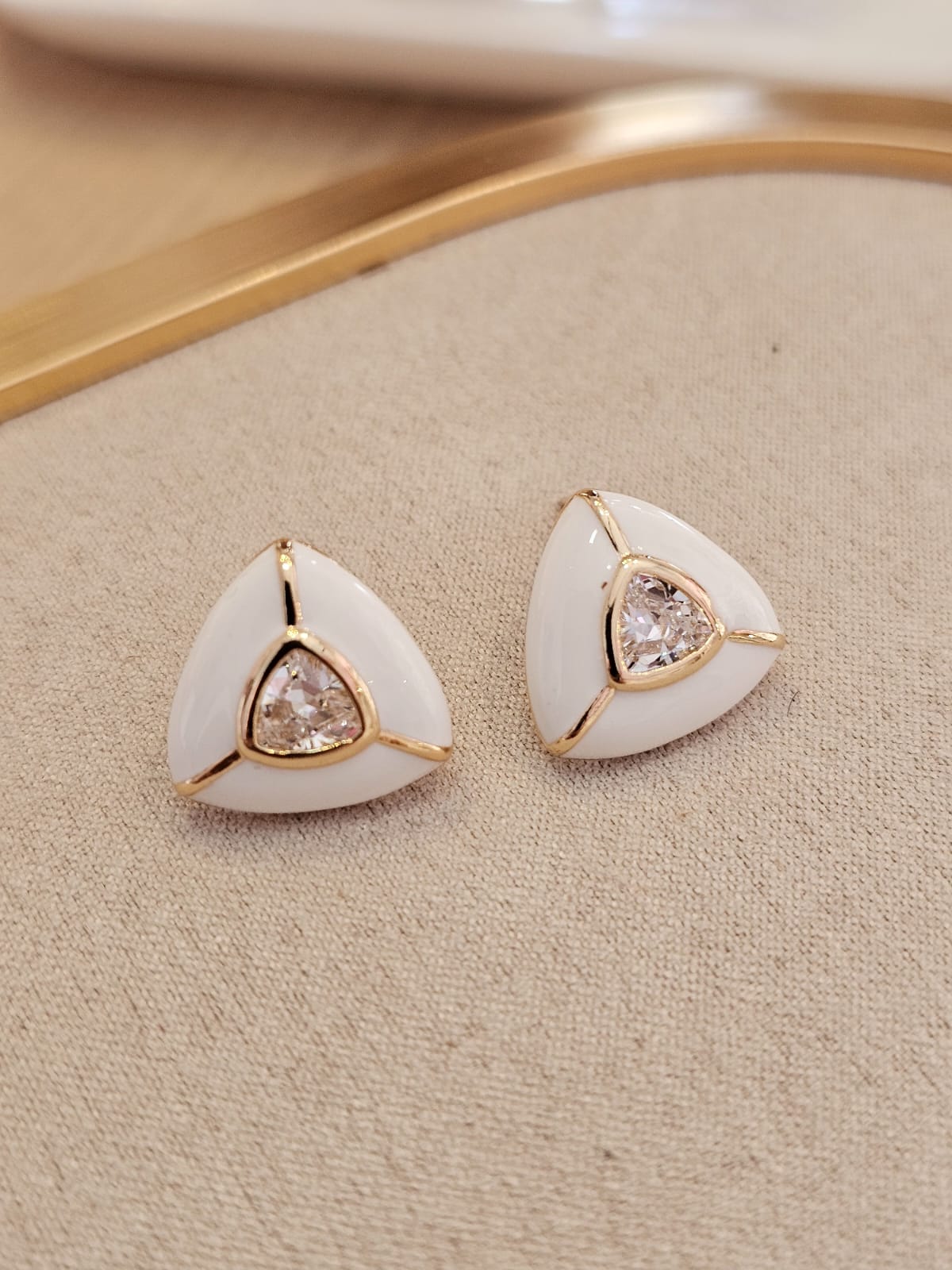 brinco com pintado com resina liquida e com detalhe de zircônia na parte central
