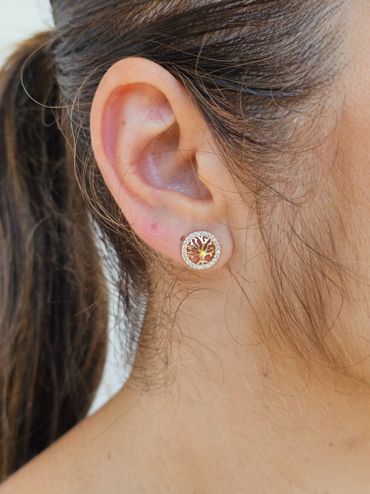 Brinco medindo 0,8cm com bordas cravejadas de strass