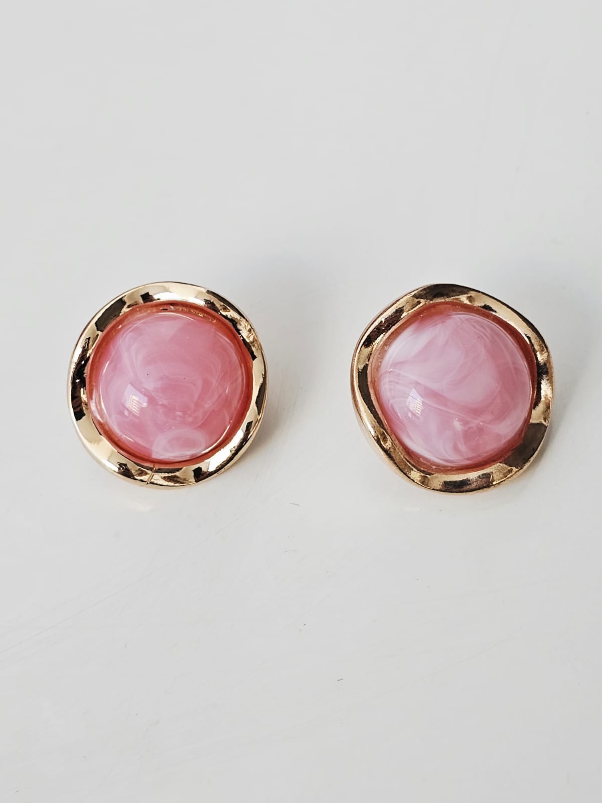 Brinco botão com caixaria dourada e pedra de resina