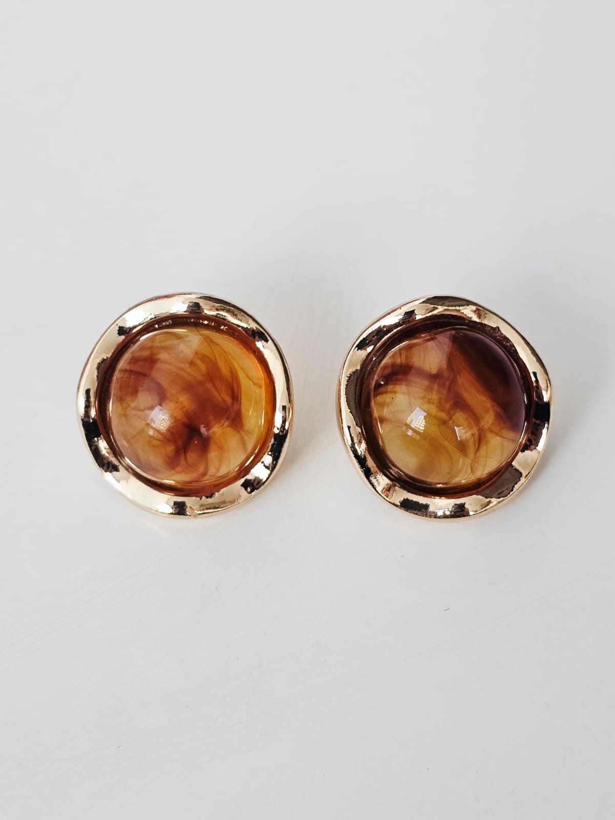 Brinco botão com caixaria dourada e pedra de resina