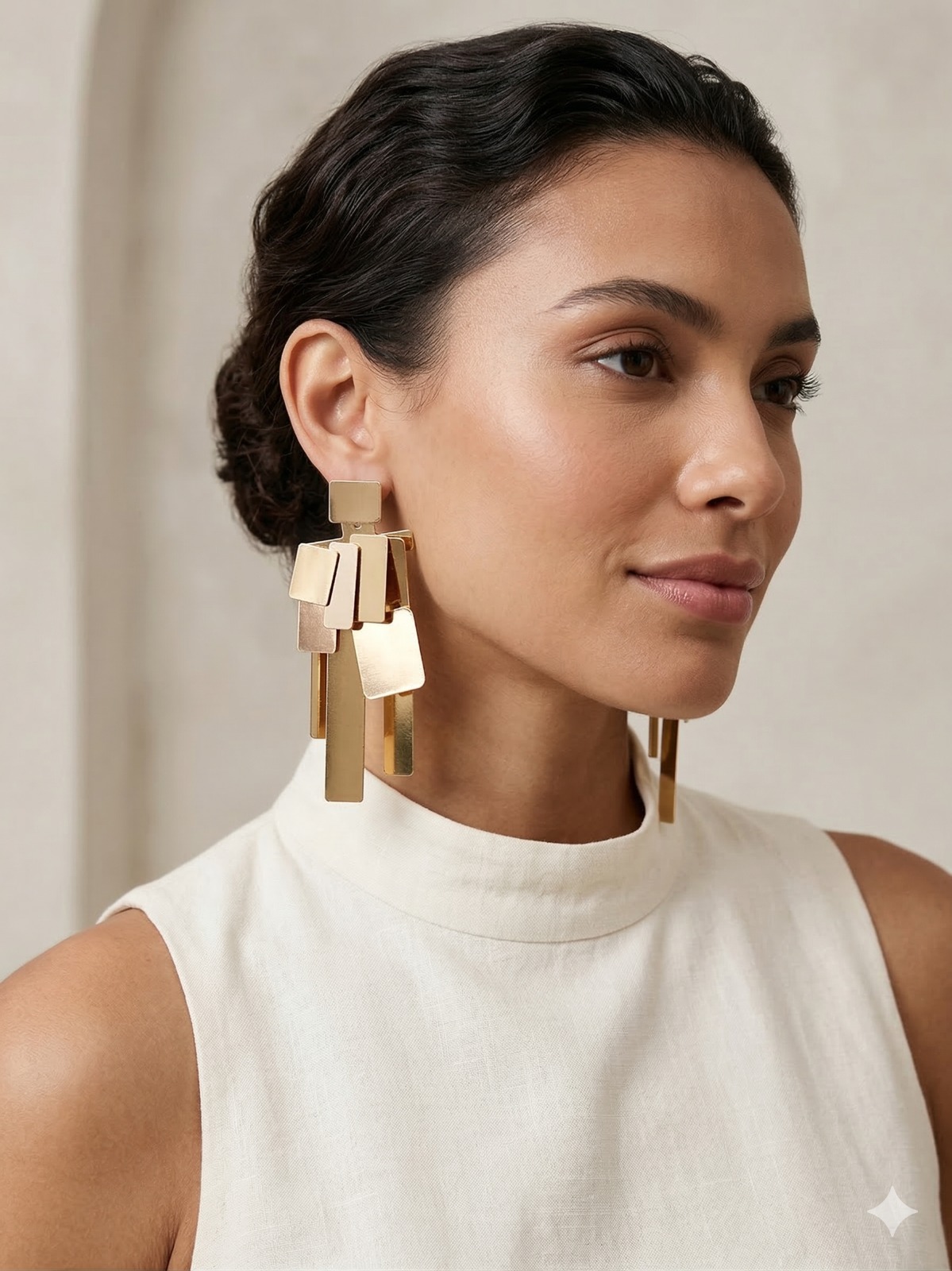 Deseja um look inesquecível? O Brinco Cascata combina o dourado polido com um design de vanguarda. Com 10 cm de comprimento, ele oferece um efeito visual de preenchimento que alonga o pescoço e traz luminosidade imediata para o rosto. É a escolha definitiva para quem não abre mão de acessórios grandiosos e imponentes.