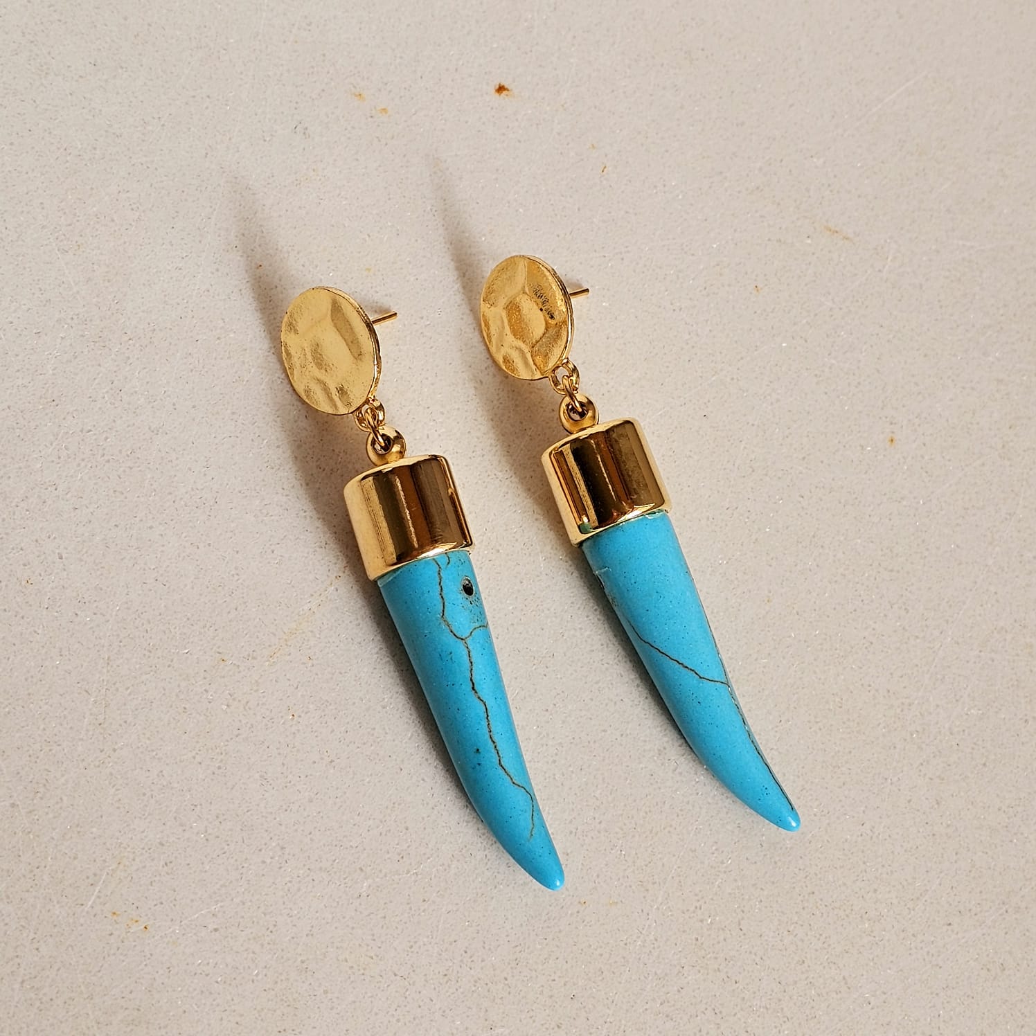 brinco com pedra natual turquesa e acabamentos em dourado