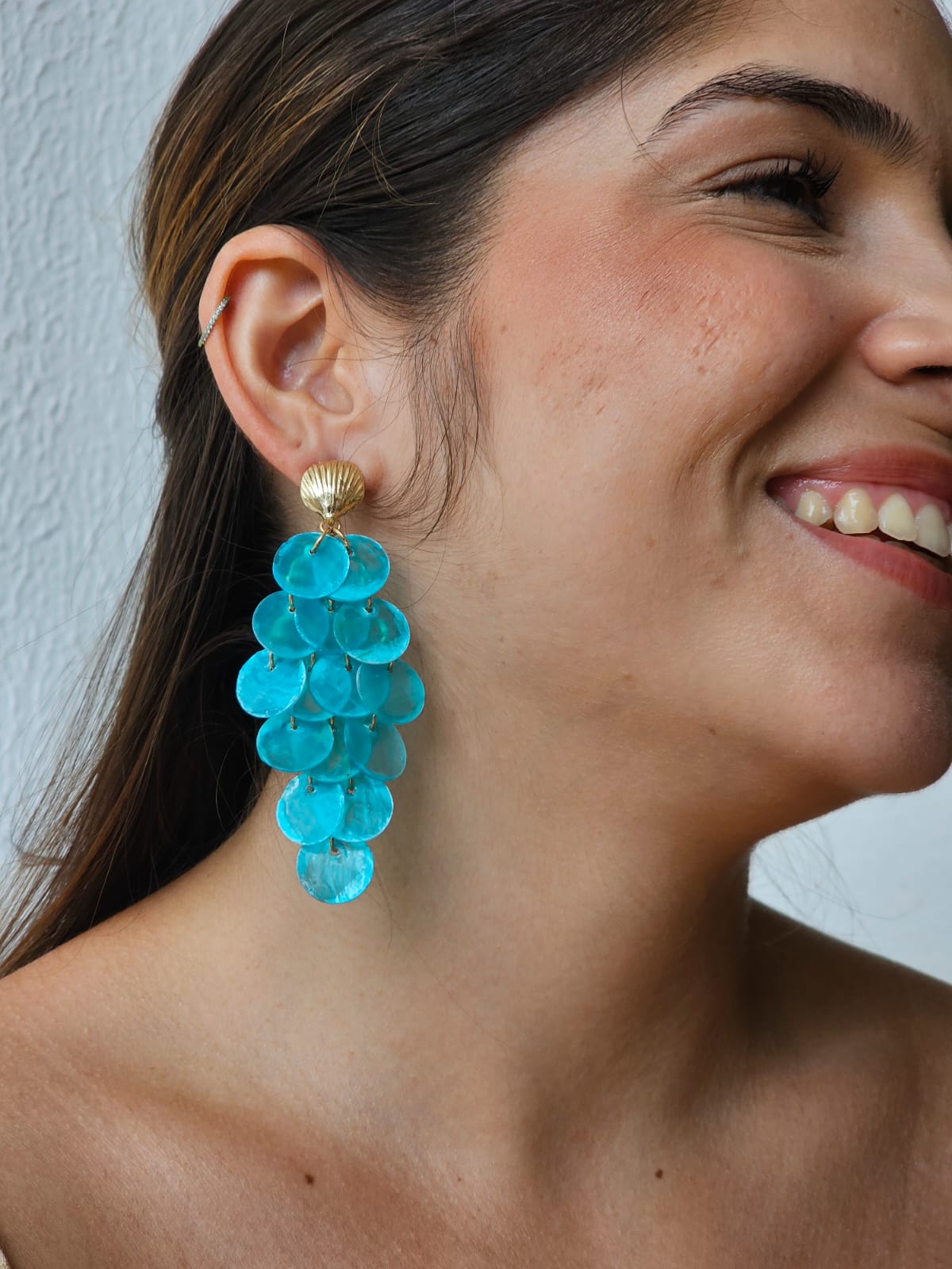 Brinco escama madreperola sereia azul