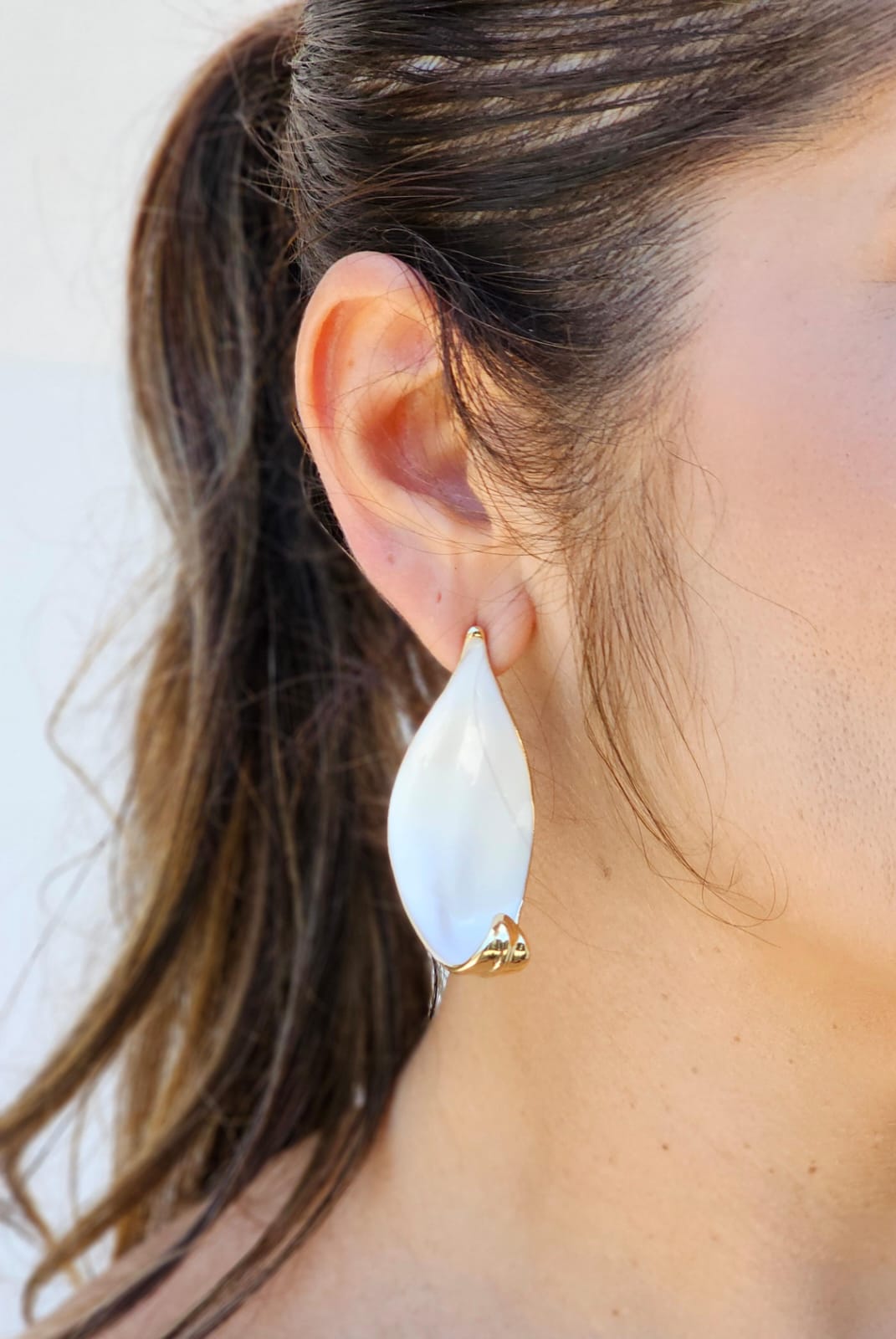Brinco em formato de folha com aplicação de resina liquida