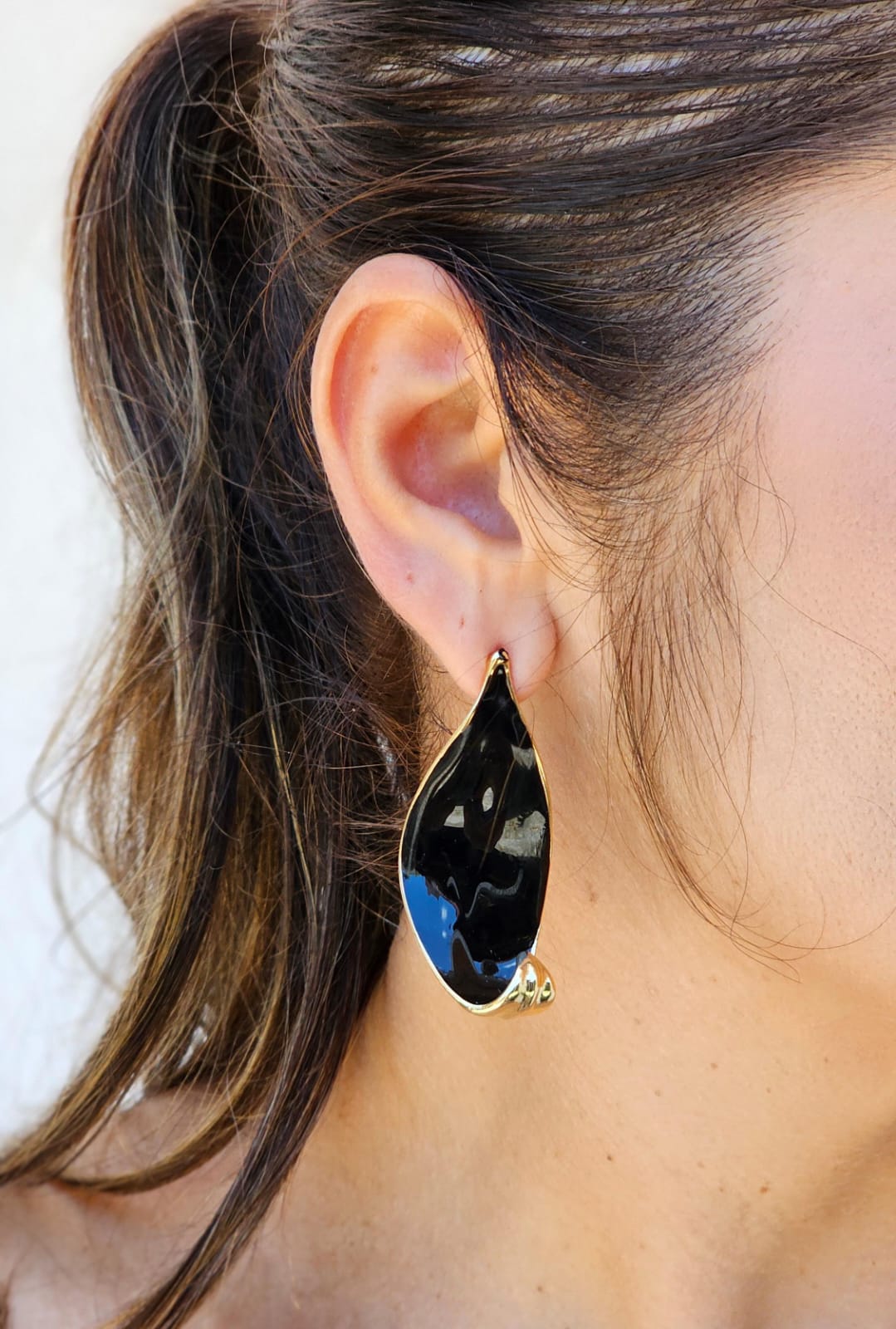 Brinco em formato de folha com aplicação de resina liquida