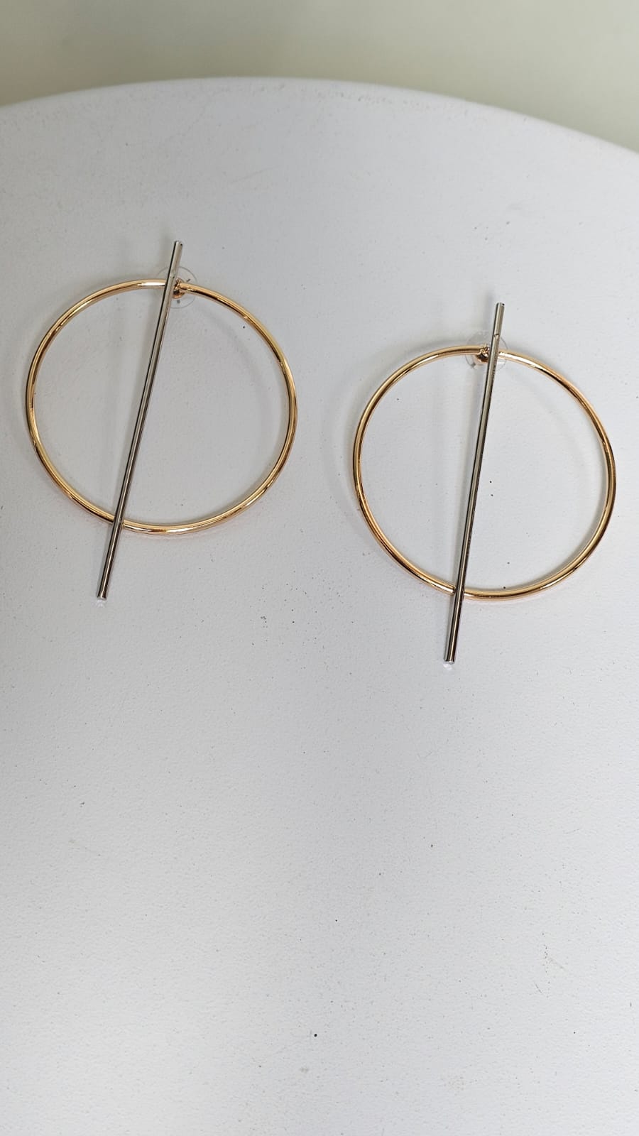 O brinco é composto por duas parte o palito prata e o círculo dourado, é possível remover o círculo dourado