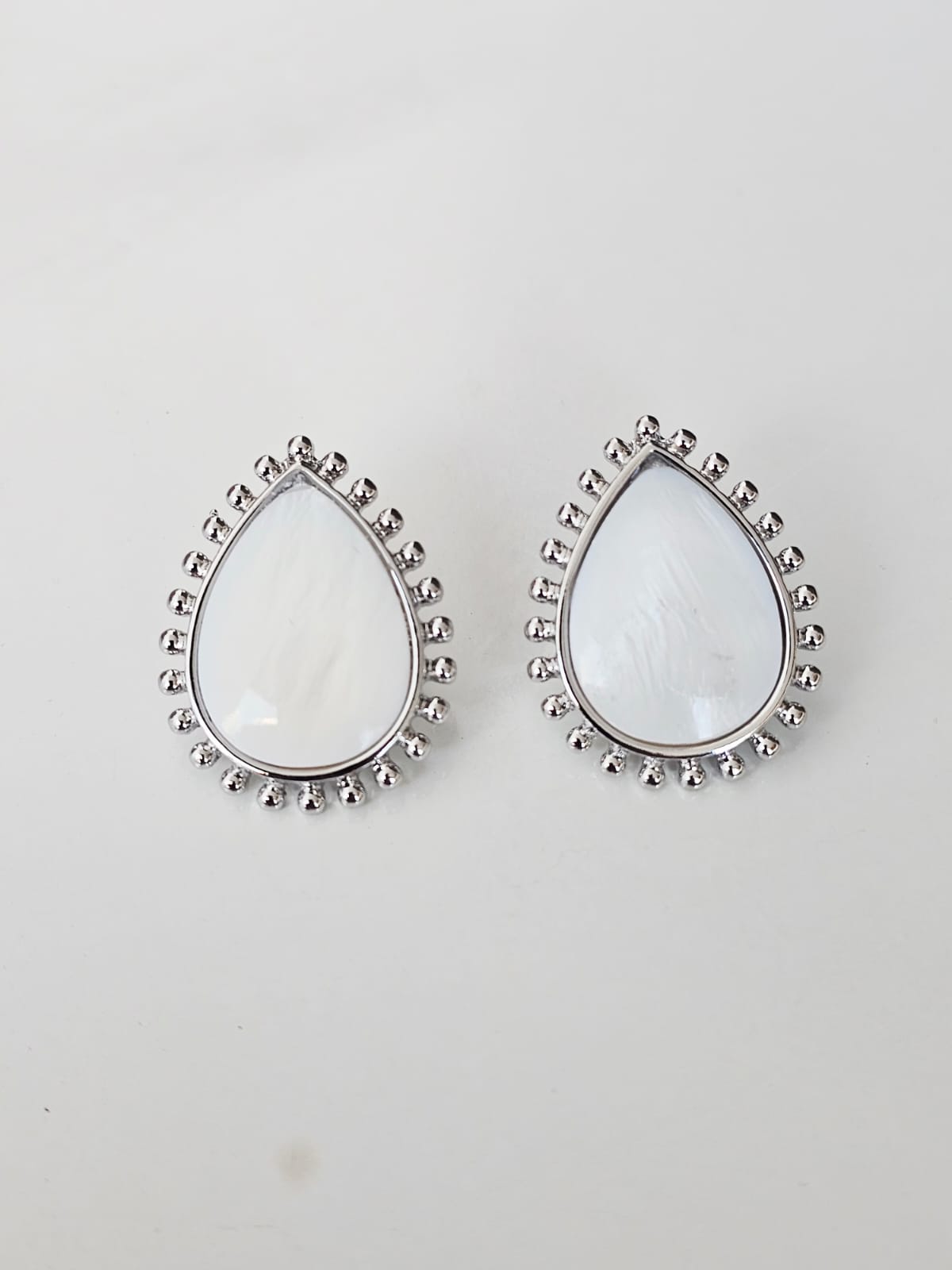Brinco em formato de gota com pinos ao redor e pedra central em madreperola