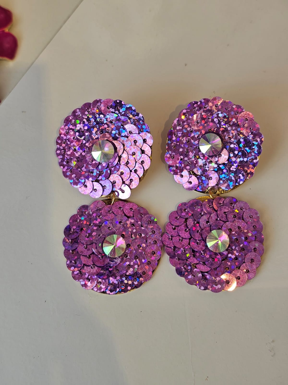 Brinco infinito de lantejoula lilás