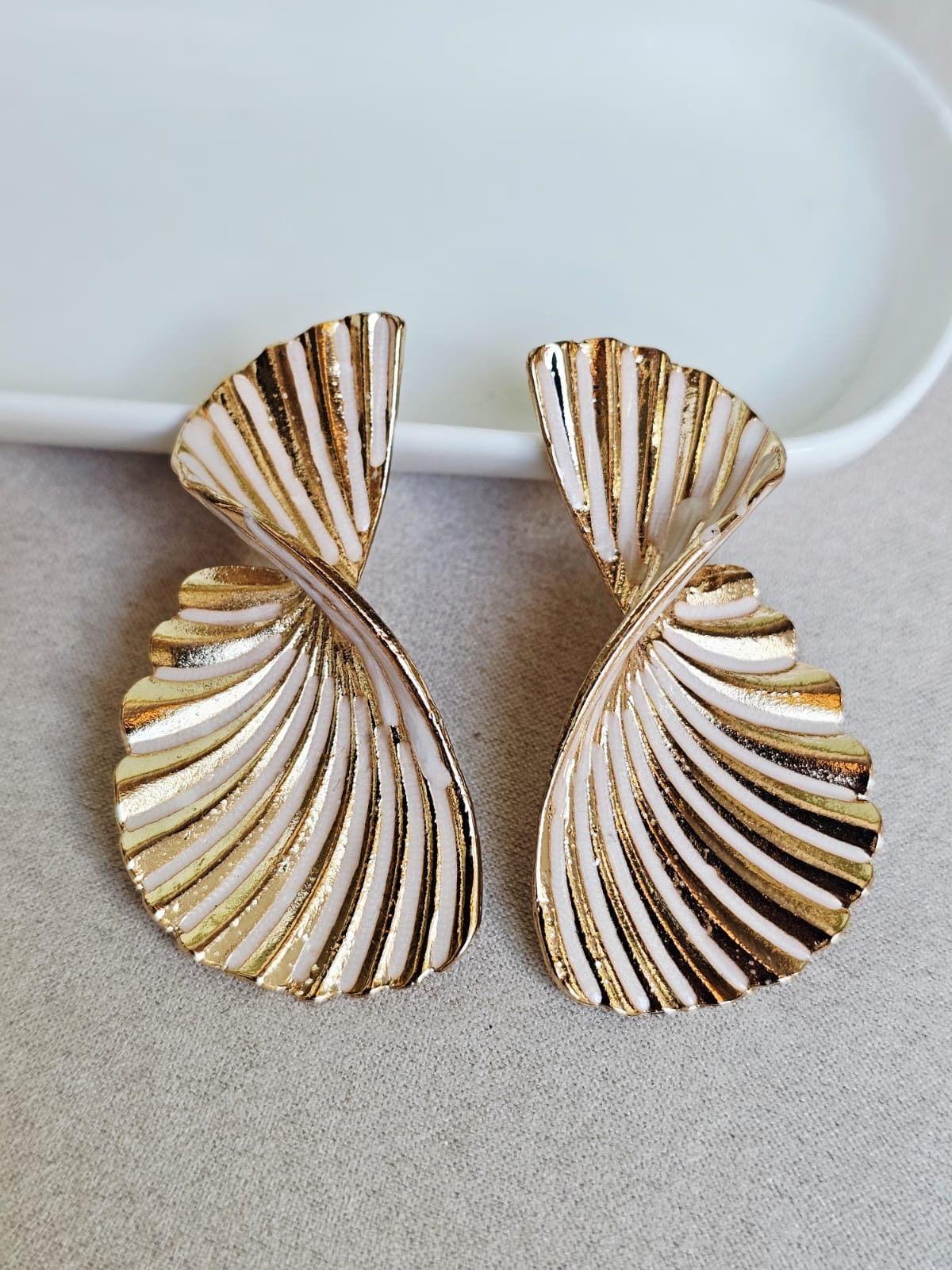 Brinco em formato de leque torcido com aplicação de resina liquida dando um toque colorido a peça