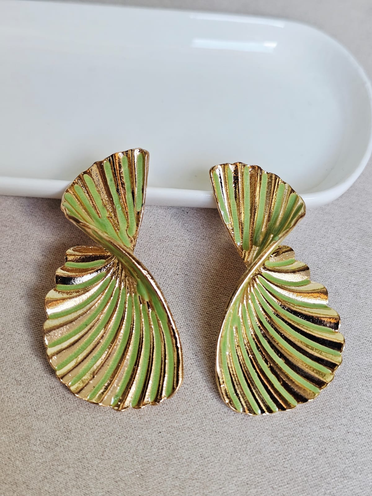 Brinco leque torcido verde