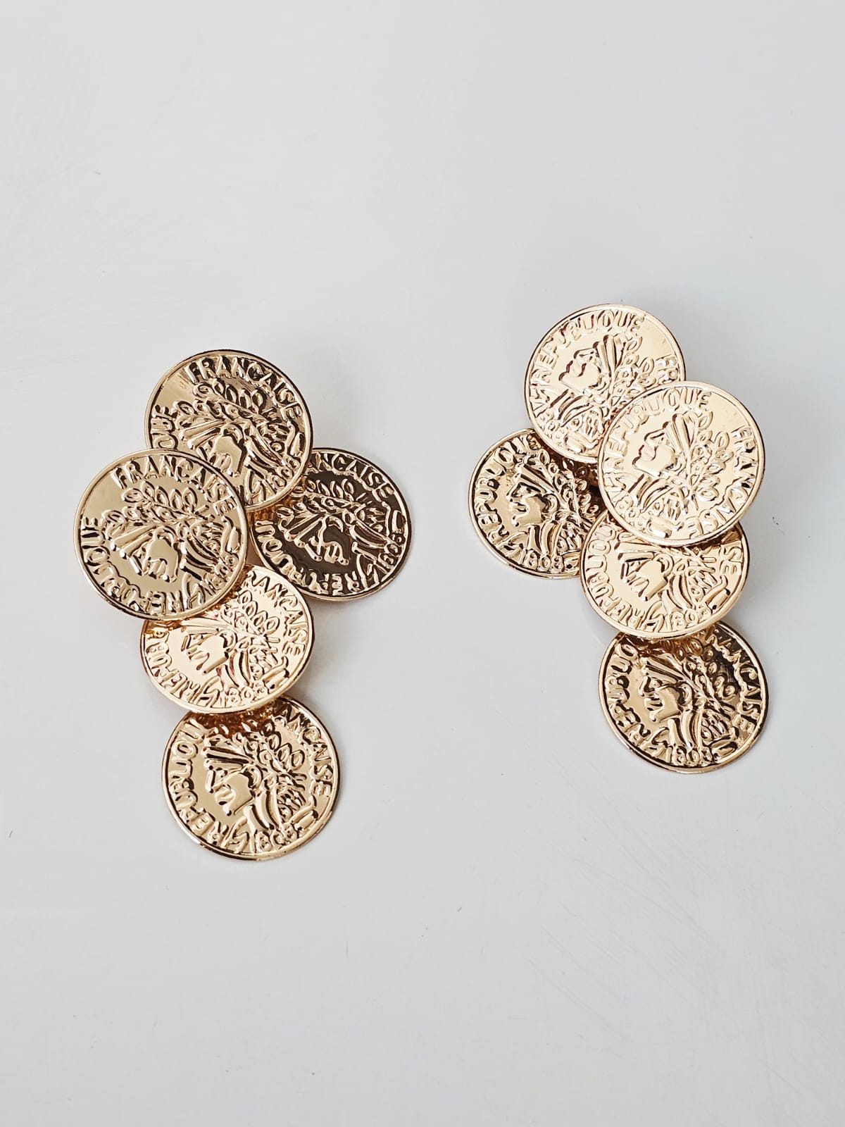 Brinco em medalhas de moedas articuladas