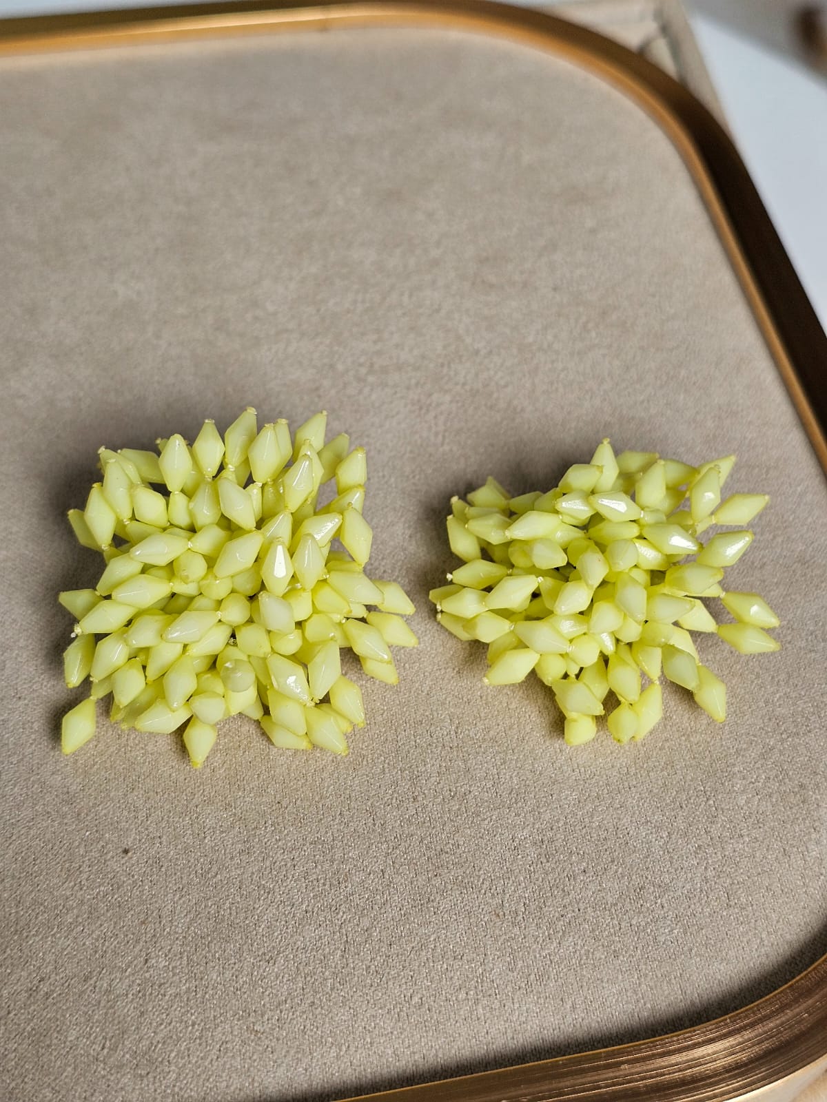 Brinco feito de miçangas em formato de balão medindo aproximadamente 4cm