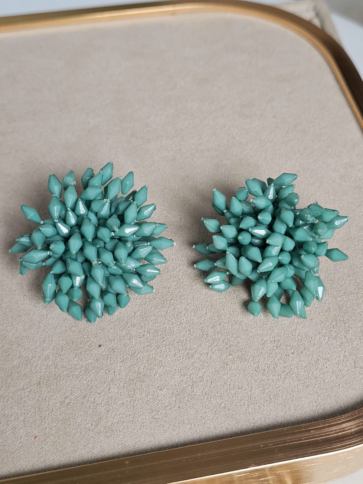 Brinco feito de miçangas em formato de balão medindo aproximadamente 4cm
