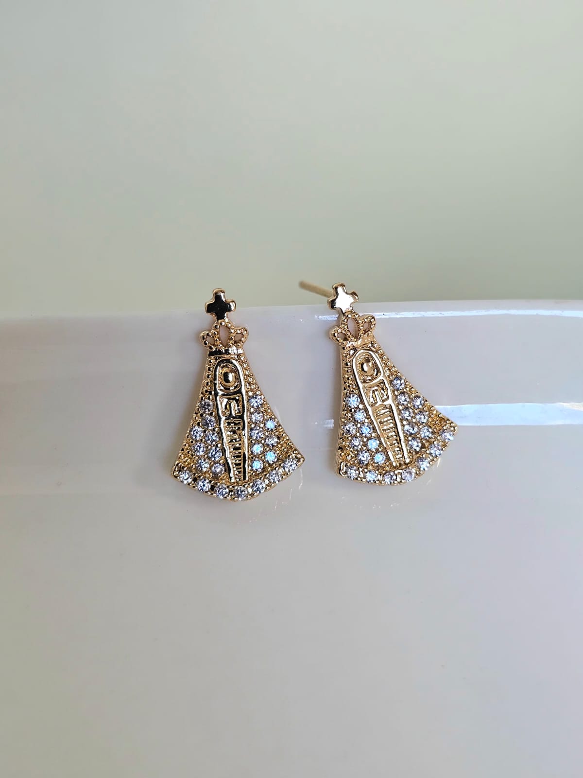 Brinco Nossa Senhora com aplique de strass