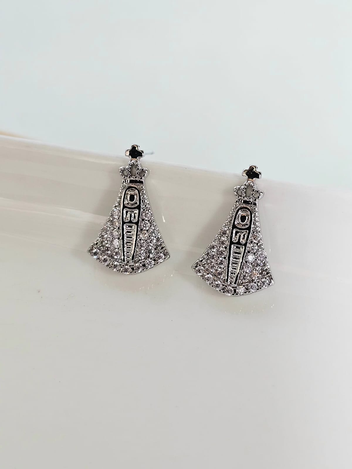 Brinco Nossa Senhora com aplique de strass