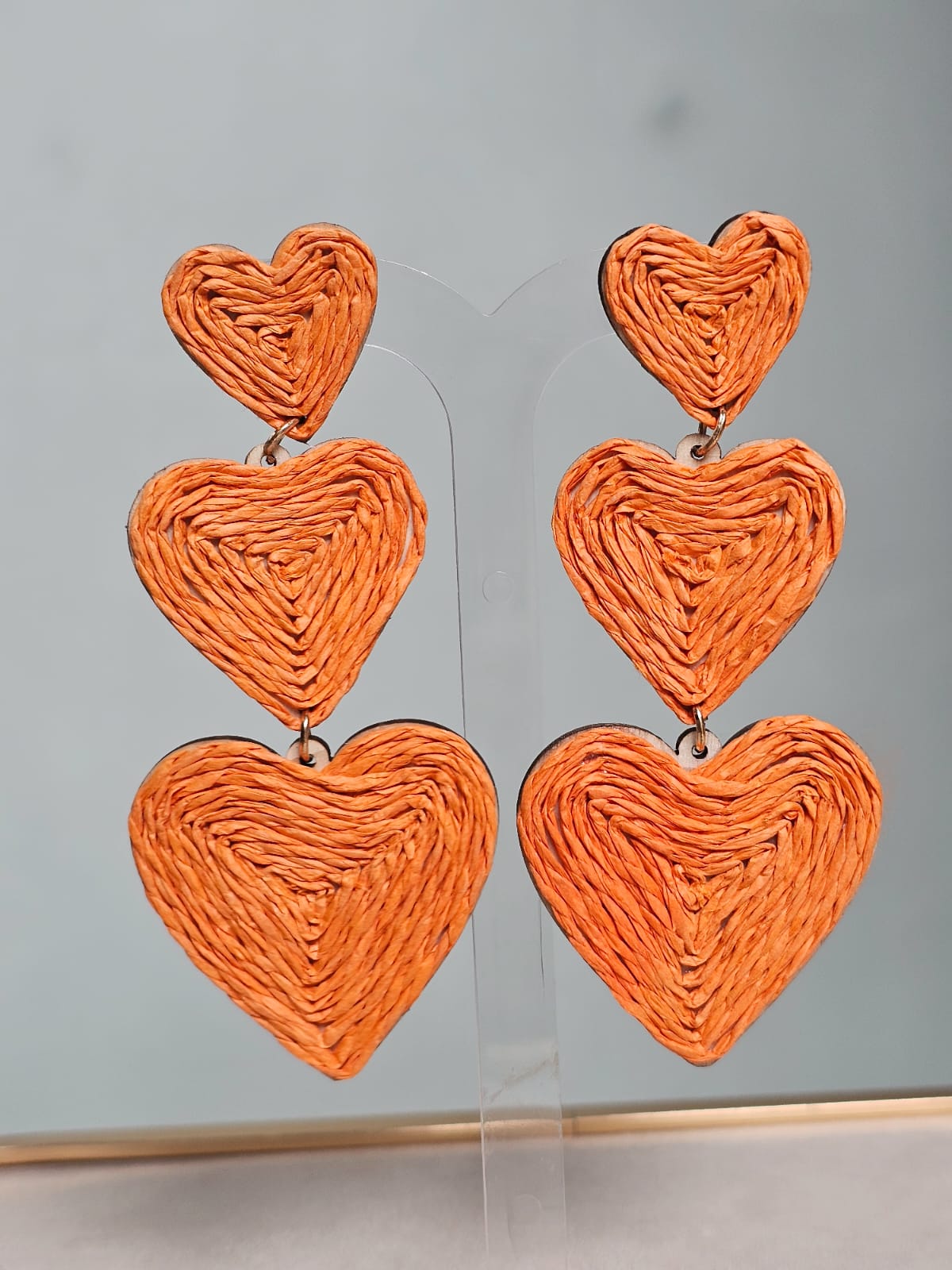 Brinco ráfia corações laranja