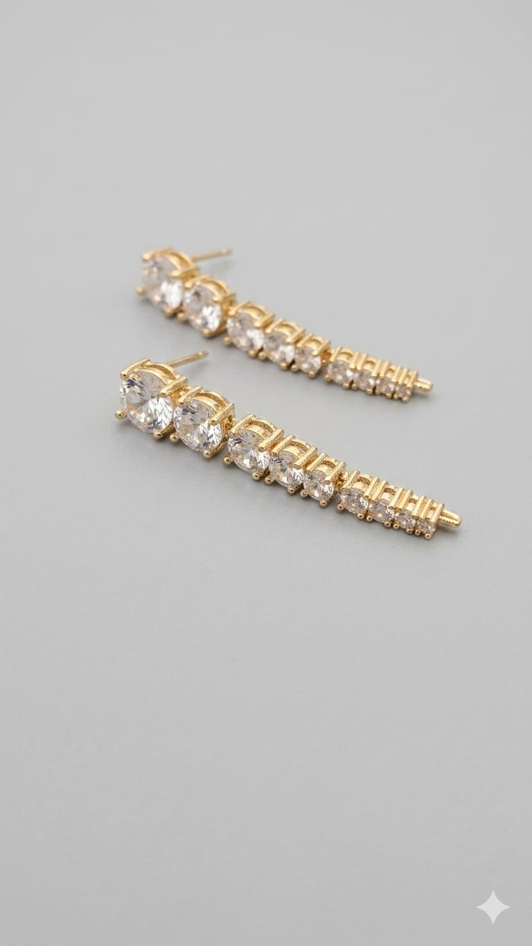 Ilumine o seu rosto com a delicadeza e o glamour do nosso Brinco Ear Line Riviera. Esta peça apresenta uma sequência impecável de zircônias brilhantes que diminuem suavemente de tamanho, criando um efeito degradê sofisticado e moderno.