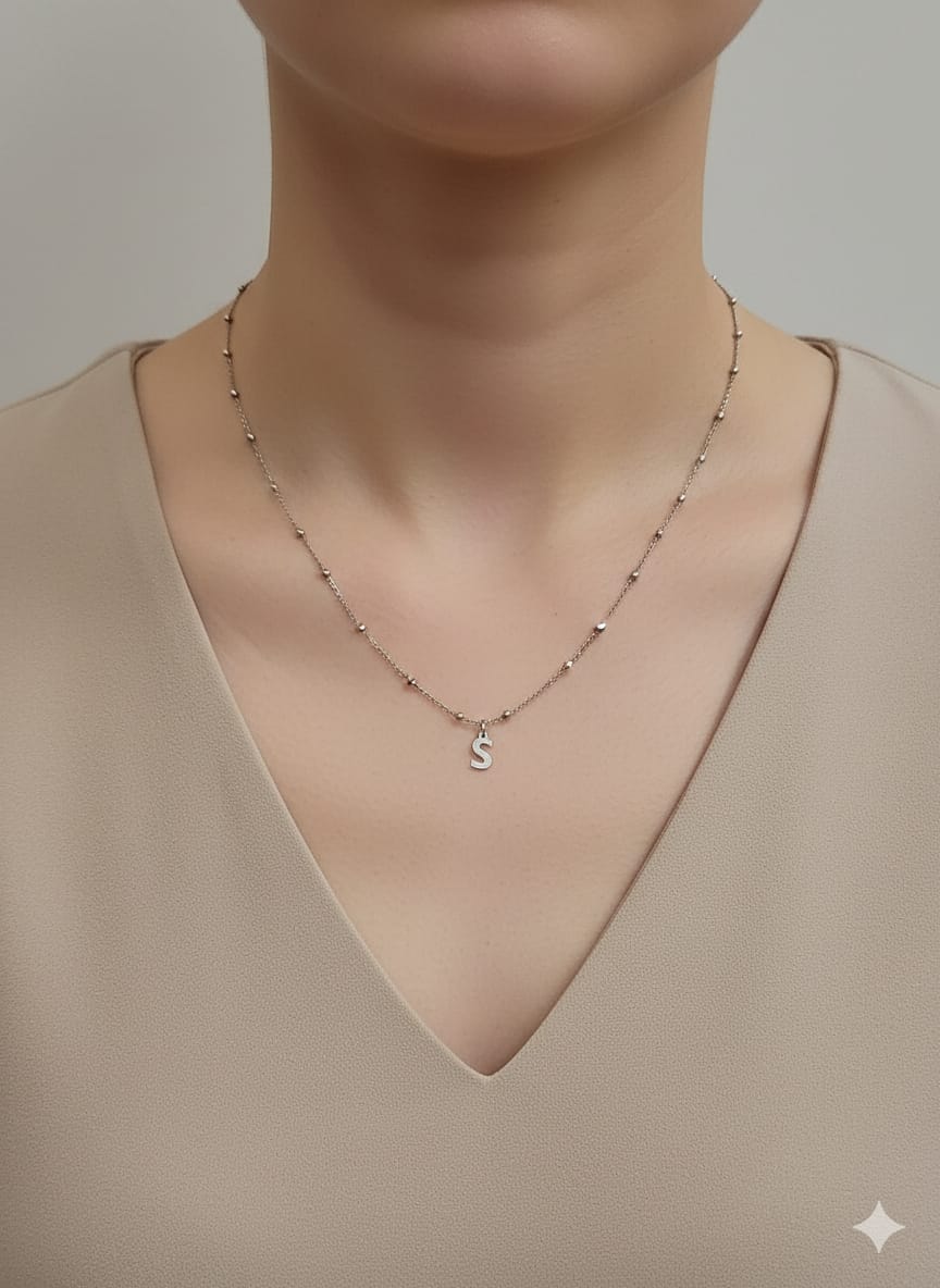 Colar inicial S corrente bolinha