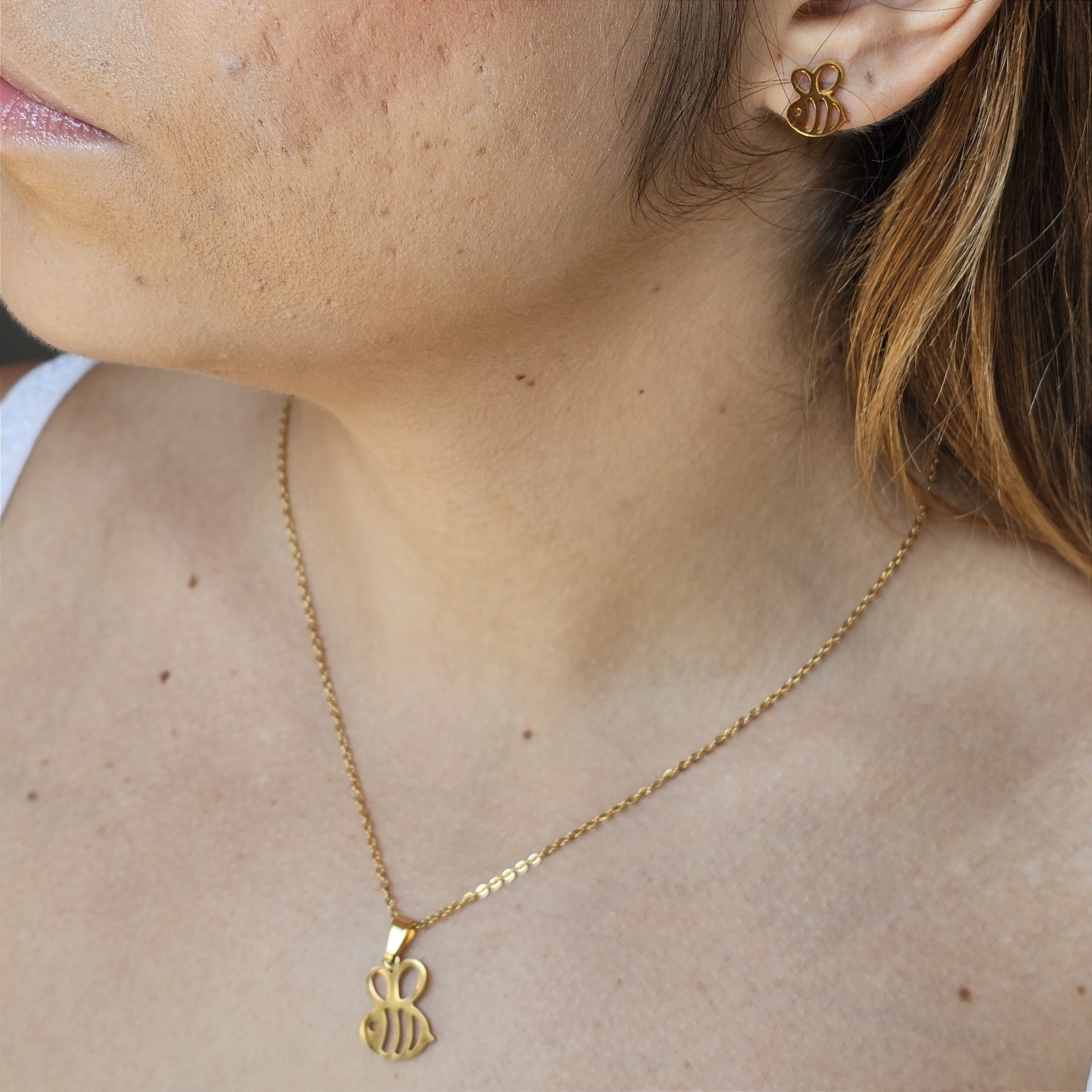 Conjunto Abelhinha Dourado Aço Inoxidável