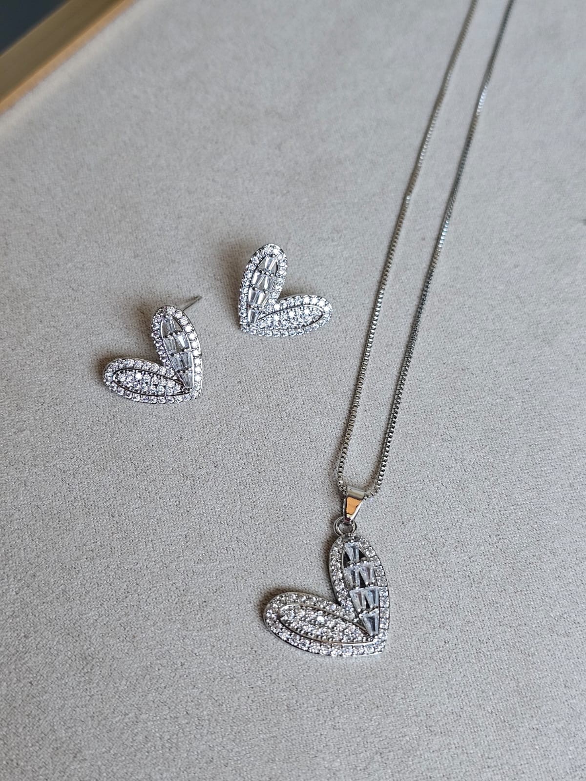 Conjunto coração cravejado prata