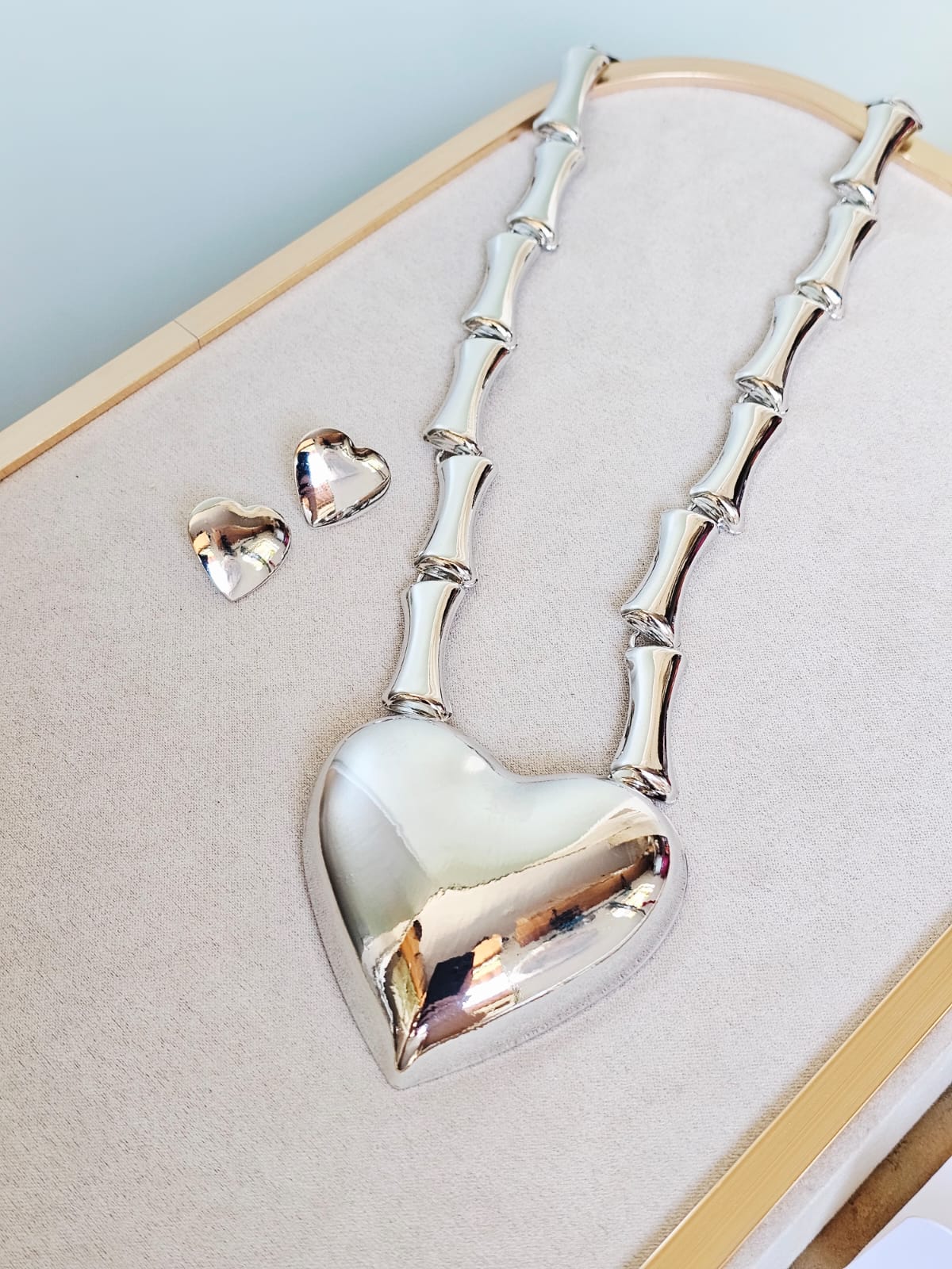 Conjunto maxi coração prata