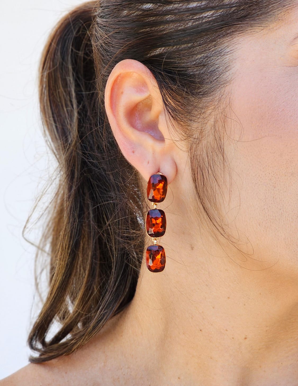 Brinco articulado medindo 4cm com chatom de vidro na cor cristal
