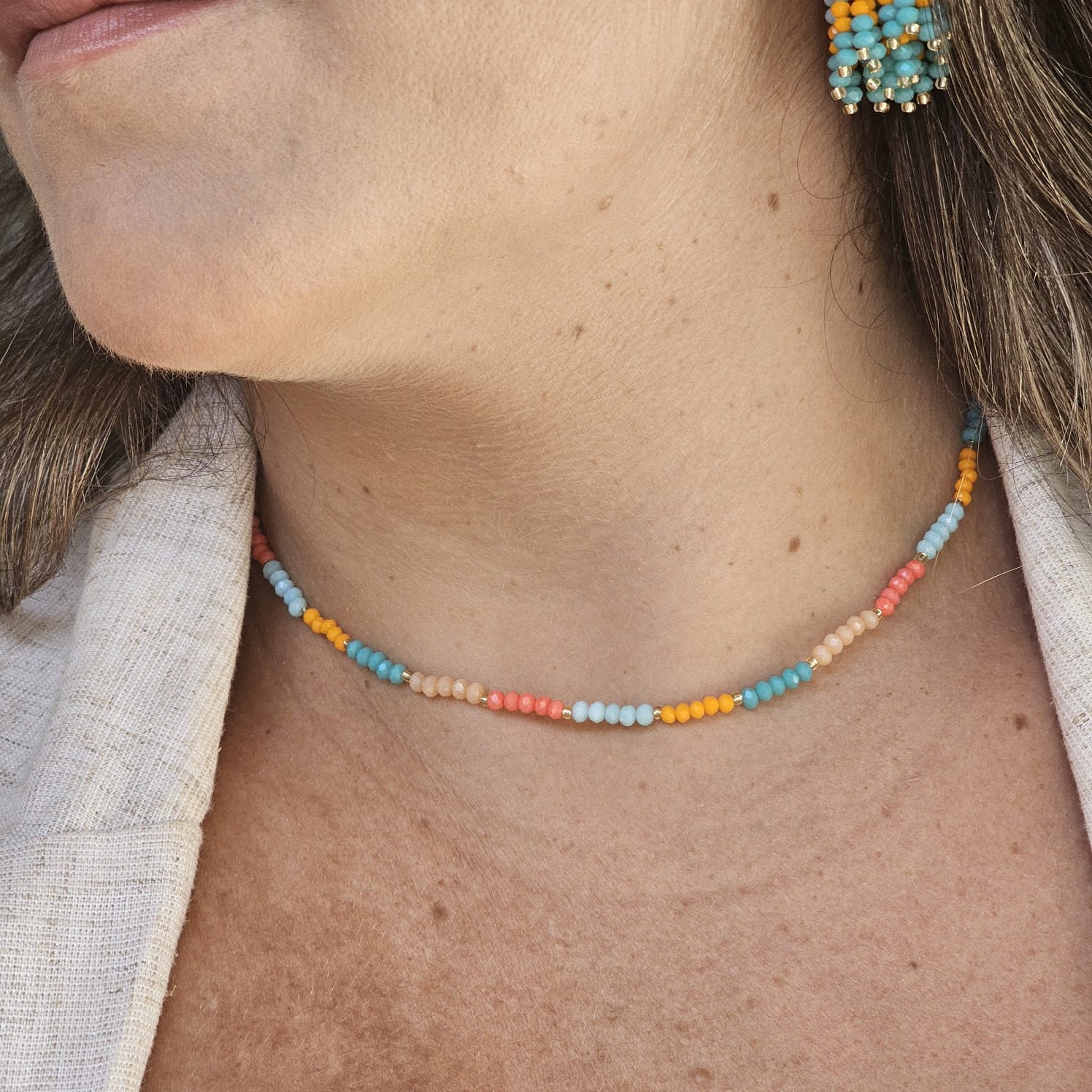 Gargantilha de mini cristais com pérola