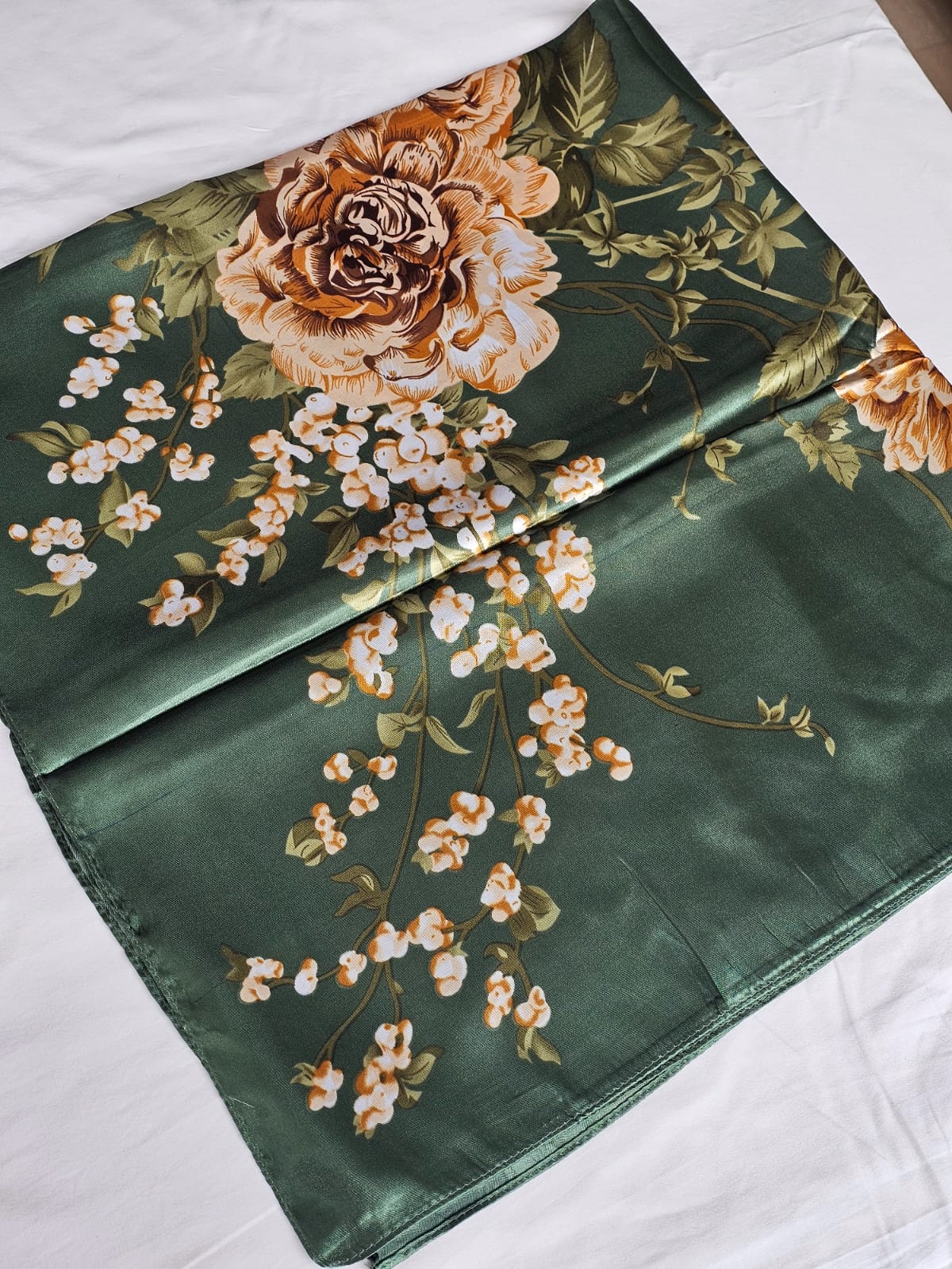 Lenço de Cetim com estampa de rosas