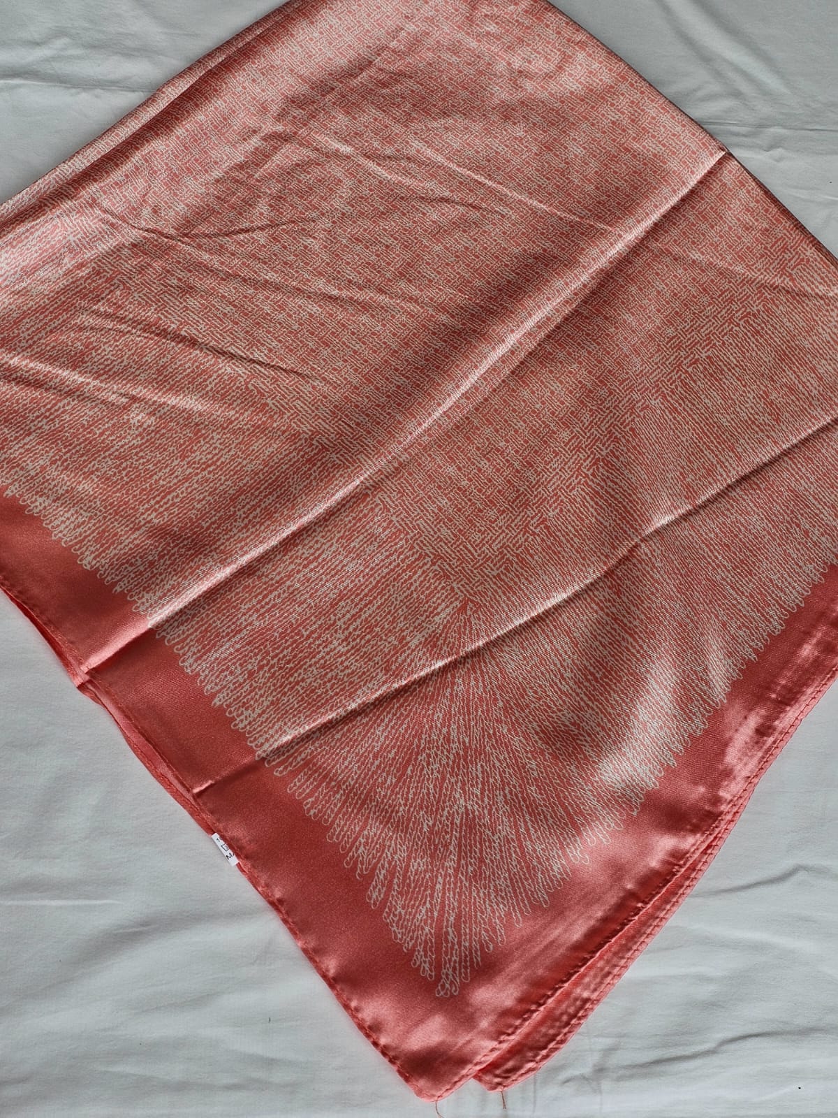 Lenço de Cetim com estampa de imita uma trama com barrado de cor intensa