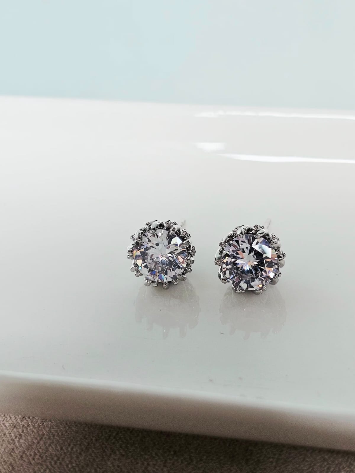 Brinco modelo ponto de luz com caixaria lateral toda cravejada