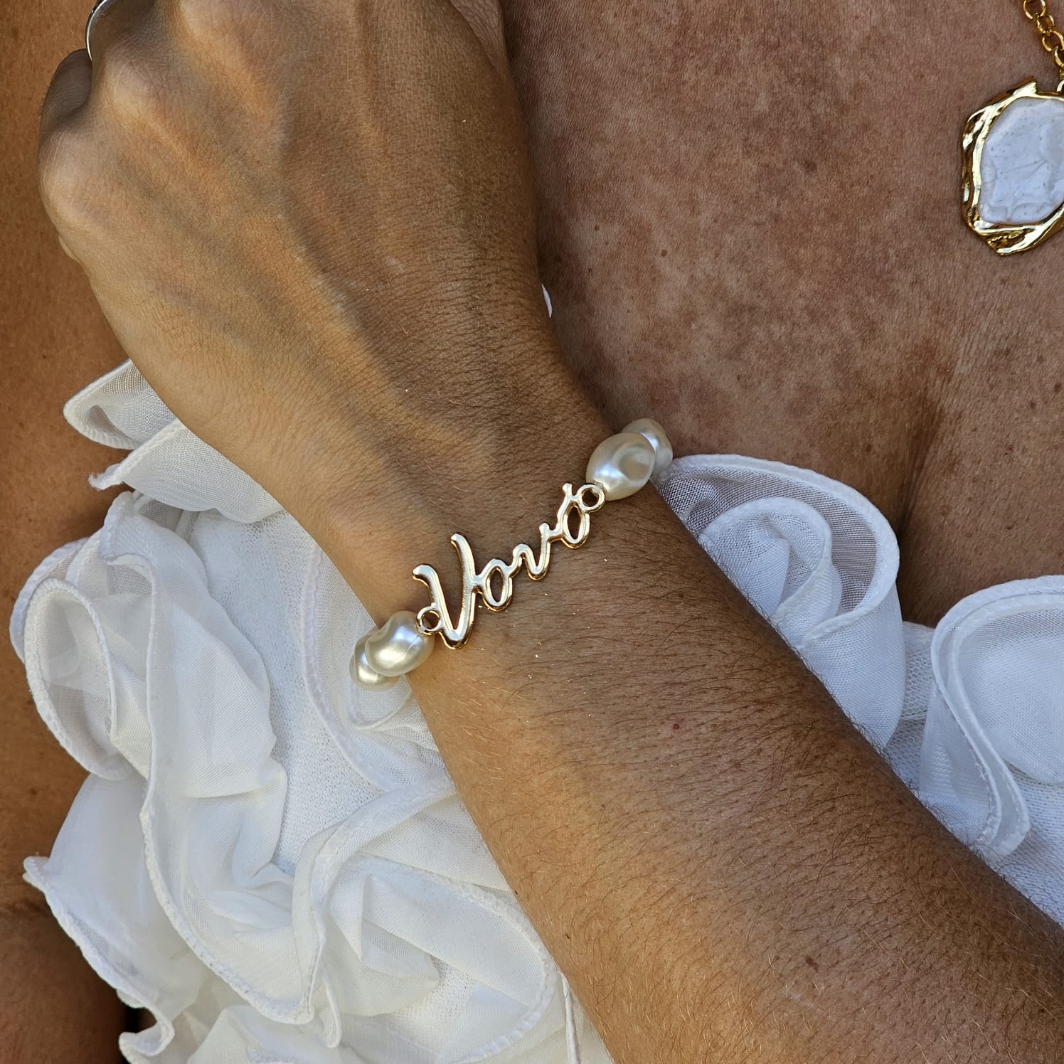 Pulseira ajustável com elático com pingente central nome VOVÓ