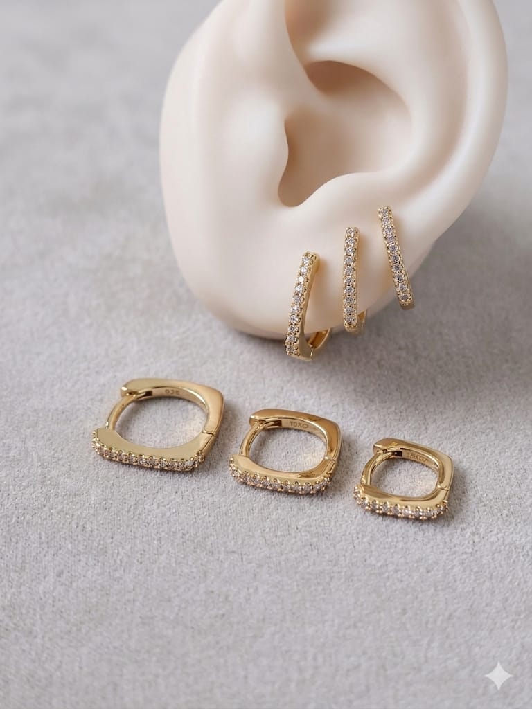 Trio de argola cravejada dourada