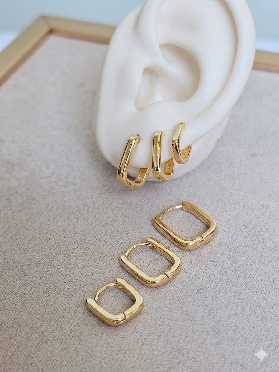 Trio de argolas em três tamanhos diferentes com fecho de clique (não precisa de porca)