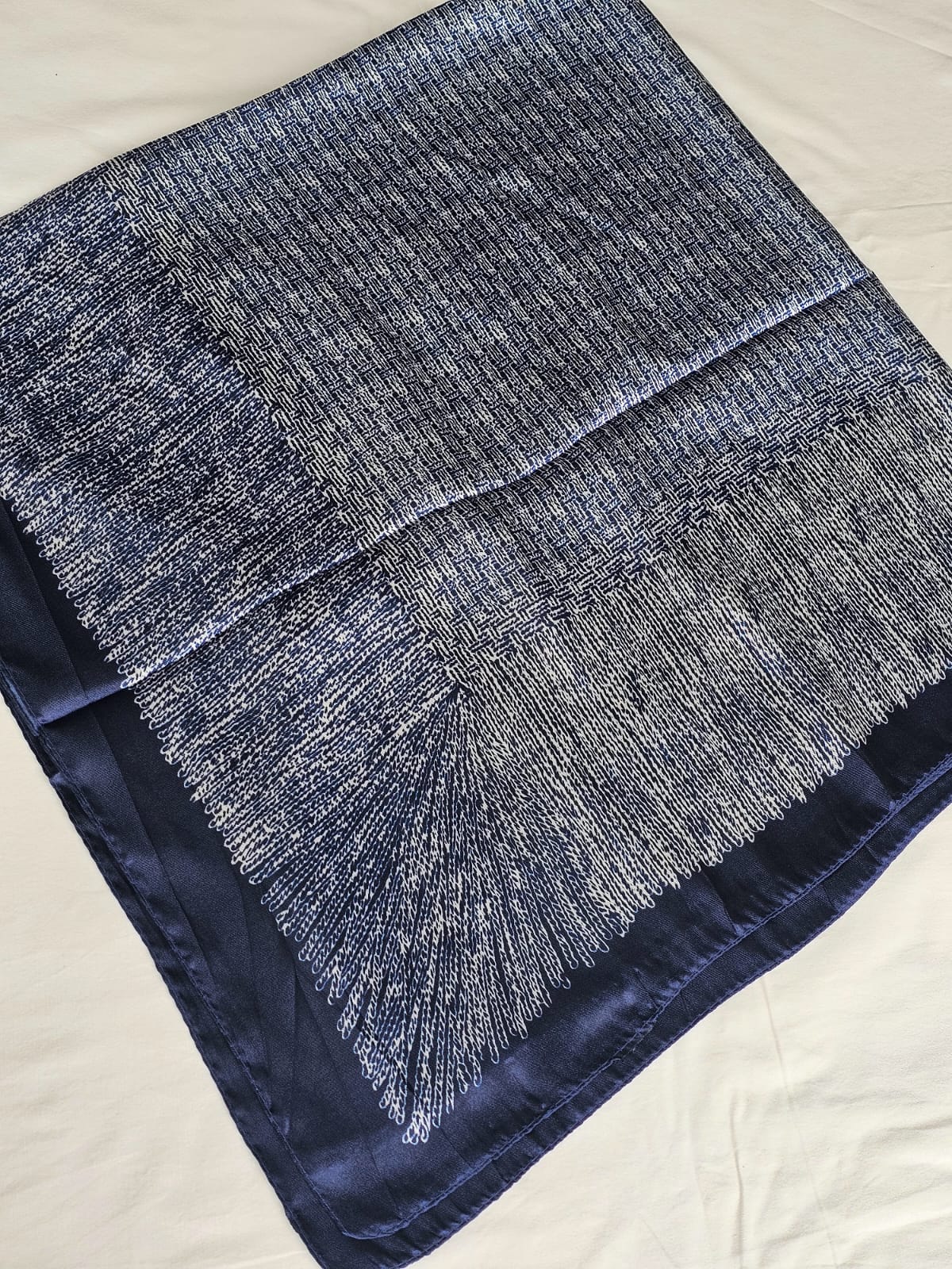 Lenço de Cetim com estampa de imita uma trama com barrado de cor intensa